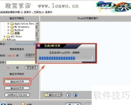 5、 点击输出SWF文件可生成Flash格式的SWF文件,即为flash相册,需使用Flash播放器播放,也可上传至网络与好友分享。选择输出EXE文件则生成可在任意电脑上直接运行的可执行文件,无需额外播放器即可观看,方便快捷,适用于各种场合的展示与传播。