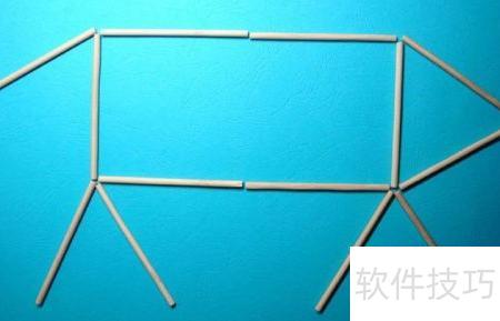 5、 取四根小木棍摆在纸上,组成小猪的腿脚部分,形成所示的图形。
