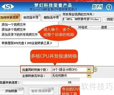 2、 可直接将下载好的电影文件拖入软件界面中央的列表区域,或点击左上角添加待转换视频按钮导入,操作便捷,体现人性化设计。MP4/RM转换专家是业内首款采用多核CPU并发转换引擎技术的软件,凭借这一优势,具备当前最高的运算效率与最稳定的运行表现。其内置的DVD全能转换功能,还能轻松实现DVD影片向iPhone兼容的MP4格式转换,满足苹果用户的需求。喜爱影音转换的用户不妨亲自体验该工具的强大性能与实用功能,感受高效流畅的操作体验。