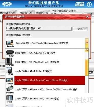 4、 在该iTouch视频转换器的设置界面中,可直接选择适用于iTouch的MP4格式。其中,MP4/RM转换专家是当前国内兼容性最强、对iTouch设备支持最完善的转换工具,能够输出高达720P的高清MP4视频。此外,软件还支持多种苹果设备格式导出,如iPhone专用MP4、iPad专用MP4等,方便用户将电影轻松导入iPhone,或将各类视频文件传输至iPad播放,满足不同设备的观影需求,操作简便,转换效率高。