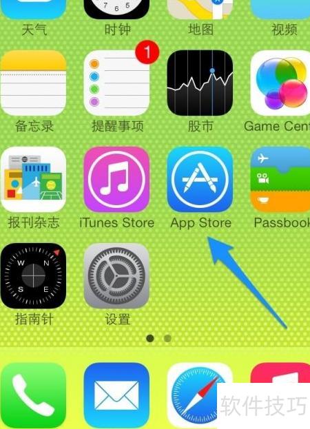1、 在 iTouch 主界面找到 App Store 图标,点击进入应用商店,操作所示。