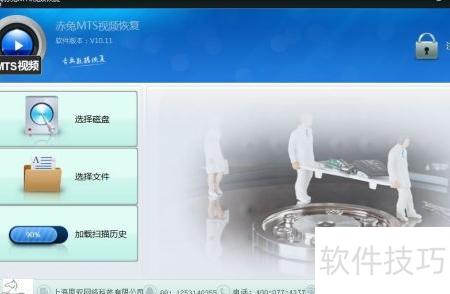 3、 运行刚下载的MTS视频碎片恢复软件,界面显示三个选项。若需恢复丢失数据,点击第一个打开磁盘按钮即可开始操作。