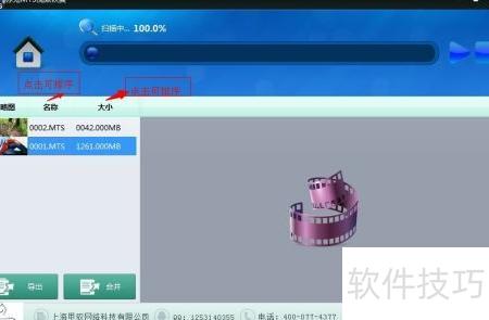 8、 在扫描界面,右键点击已扫描的MTS视频可进行排序、删除、导出或合并操作。
