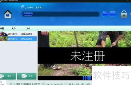 9、 排序可将扫描出的视频按文件大小从大到小排列;删除用于移除选定的视频文件;导出功能仅支持将单个选中视频保存至指定位置;合并则能将一个或多个已扫描的视频整合为一个文件。使用Ctrl键可多选,按下Ctrl+A即可全选所有视频。