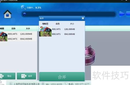 12、 点击合并恢复按钮,弹出相应界面后,从扫描页面拖动视频片段至该界面,即可完成碎片视频的合并与重组。