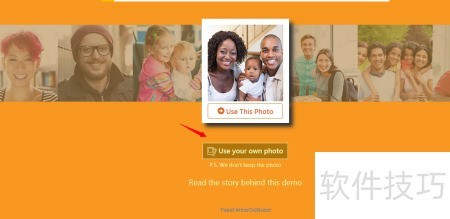 6、 当然可以使用自己的照片进行测试,返回首页后,找到并点击使用你自己的照片选项即可。