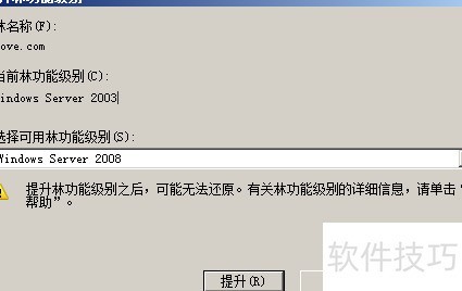 3、 完成域控制器角色升级后,通过单机管理工具中的Active Directory域和信任关系功能,检查并提升love.com域的域功能级别以及Love.com林的林功能级别,确保环境兼容性与功能完整性。