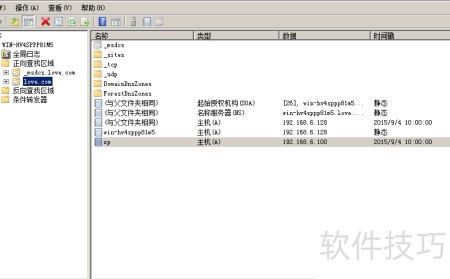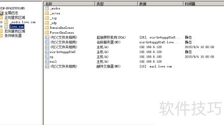 7、 在Love.com区域的DNS服务器中,已成功添加Mail主机的A记录及love.com的MX邮件交换记录。
