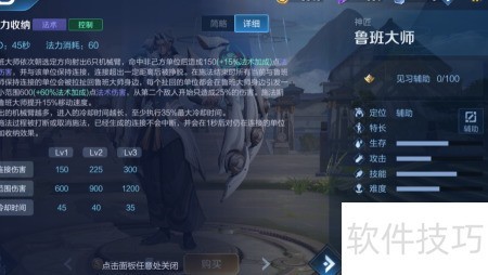 5、 鲁班大师是辅助类英雄,擅长团队协作,具体技能所示。