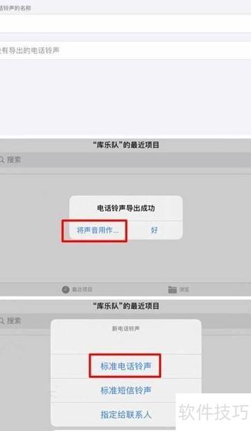 11、 进入电话铃声设置,导出并选择将铃声用作,设定为标准铃声即可。