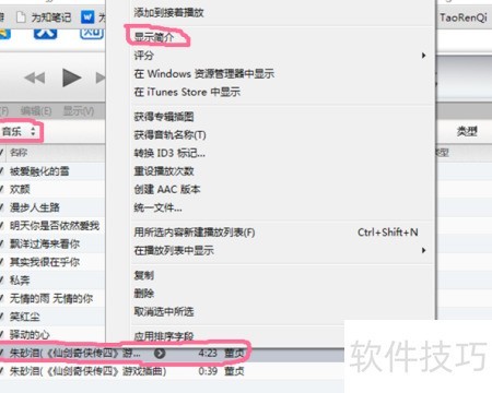 8、 右键点击已选歌曲,选择显示简介即可查看。