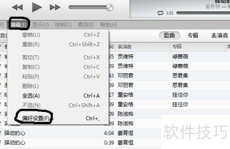 21、 可检查已制作的歌曲是否成功转为铃声。操作步骤:打开iTunes软件,进入菜单栏中的编辑,选择偏好设置进行查看确认。