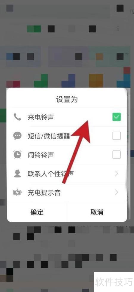 6、 进入铃声设置,选取歌曲设为来电铃声即可完成。