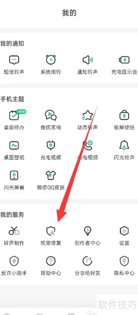 1、 进入酷狗铃声个人页面,点击底部权限修复选项。