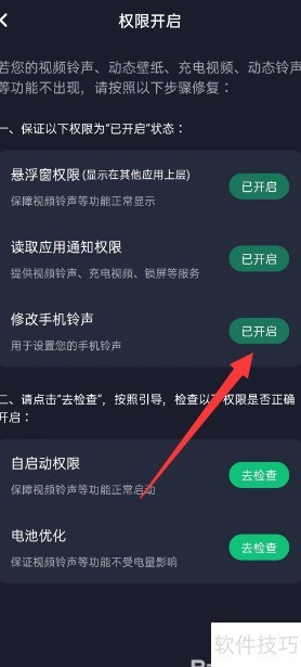 2、 进入页面找到修改手机铃声,点击后开启即可。