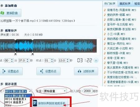 4、 将制作完成的手机铃声保存至电脑,同时可调节音质与音量大小。