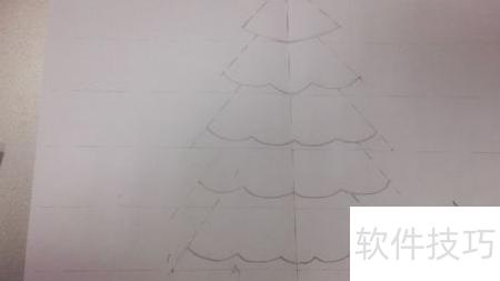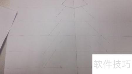 3、 从已标记的点水平绘制虚线,再由中线顶端引出两条斜向虚线,确保所有斜线彼此平行,按图示勾勒出基本轮廓。