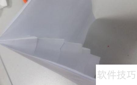 7、 沿斜虚线将剪好的部分先向一侧折叠,再反向折叠一次,随后向无铅笔标记的一侧按压,使其形成与第六步所示相同的形状。