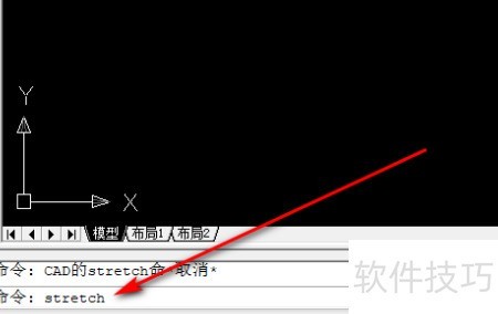 2、 绘制正方形后,输入stretch命令并按空格确认。