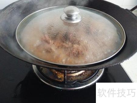 3、 加盖中火焖煮约五分钟,使食材入味。