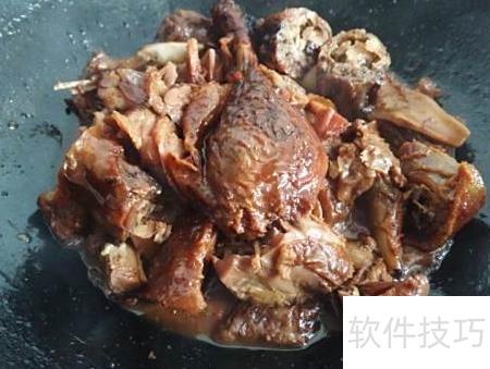 2、 将切好的烤鸭放入,撒入2克食盐。