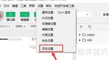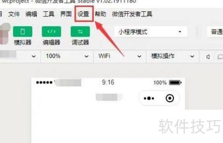 1、 启动微信开发者工具,进入主界面后选择设置选项。