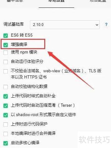 4、 进入本地设置,开启增强编译功能,操作所示。