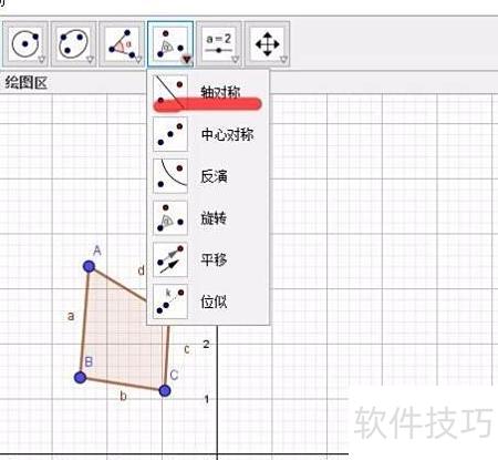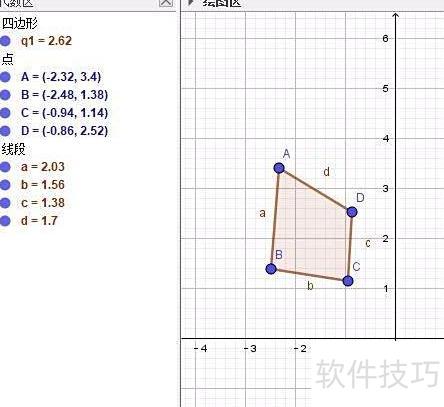 1、 启动GeoGebra,在绘图区绘制一个四边形。