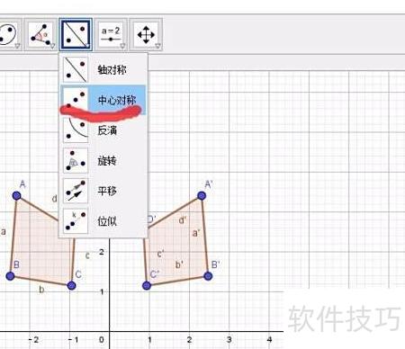 5、 依次选择图形对象与对称中心,即可自动生成对应的中心对称图形。
