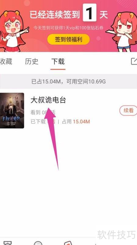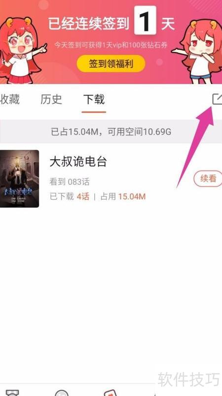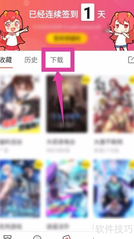 1、 进入我的漫画页面,点击顶部下载按钮,即可跳转至下载界面,操作所示。