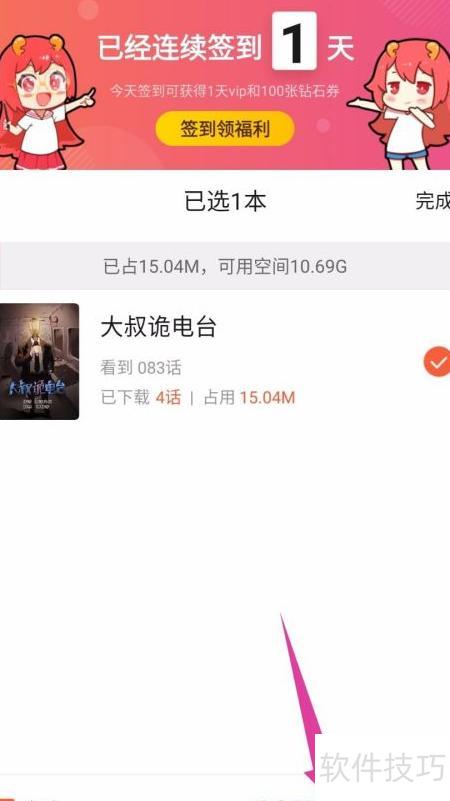 3、 选择需删除的漫画,点击底部删除按钮即可,操作所示。