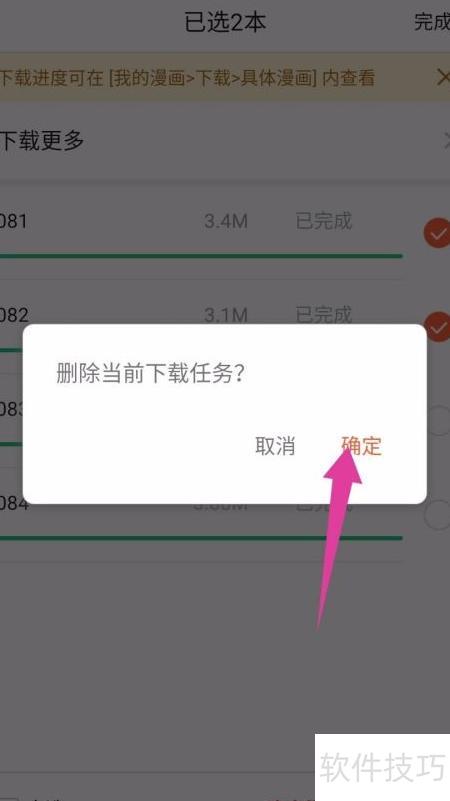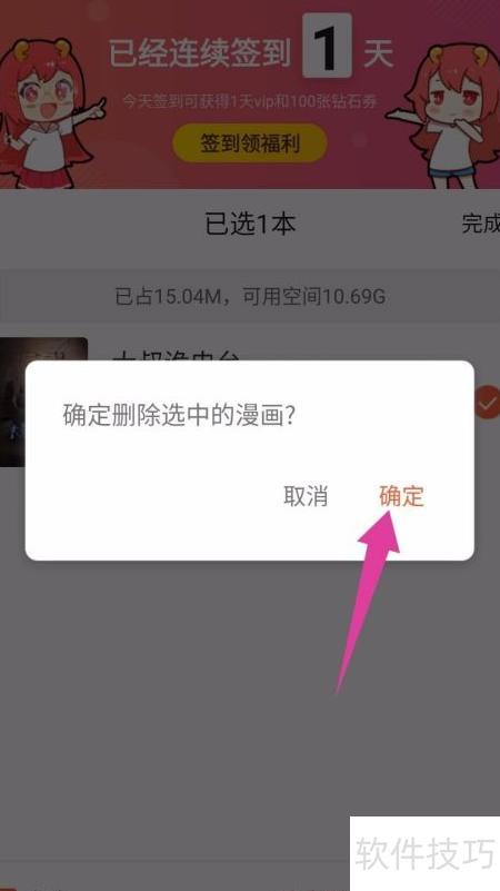 4、 在弹出窗口中点击确定即可删除整本漫画,操作所示。