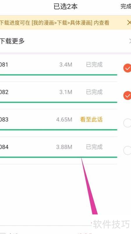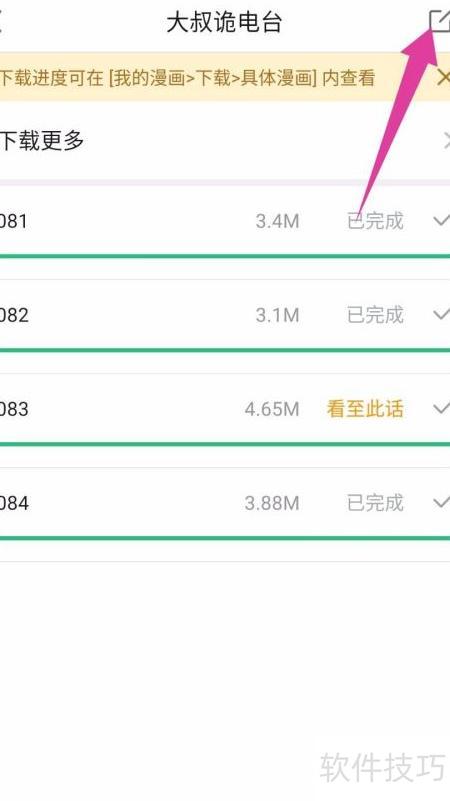 5、 在下载页面点击打开漫画,按图示操作即可删除指定章节。