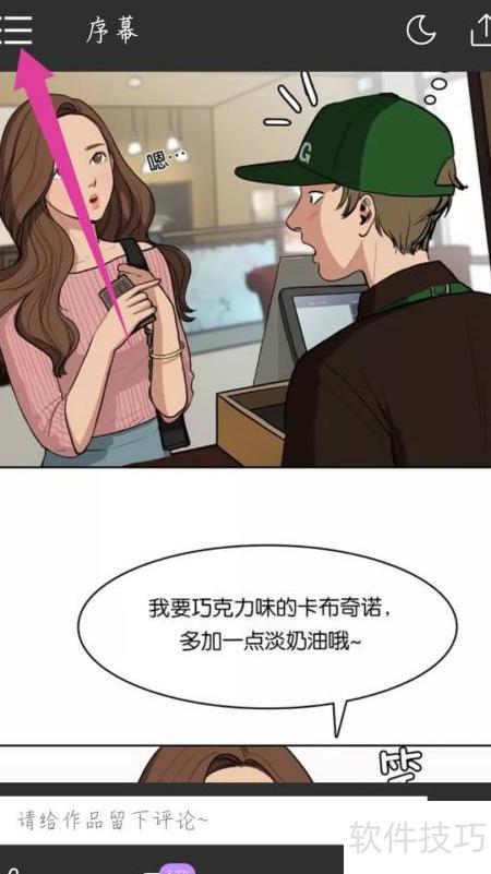 2、 在漫画阅读页,点击顶部三条横线图标。