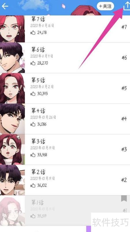 3、 点击页面右上角的箭头图标进入目录。