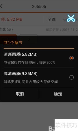 4、 选择所需章节后点击确认下载,若需全部下载,可先点全选再点击确认下载即可完成操作。