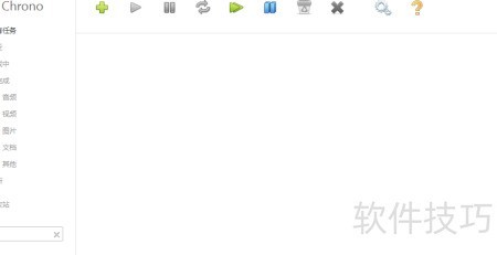 4、 从左至右依次展示chrono的部分功能:添加下载任务(即我们所需功能)、暂停下载、继续下载等操作选项。