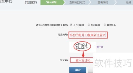 6、 将账号ID填入图示区域,输入验证码后点击确认即可完成操作。