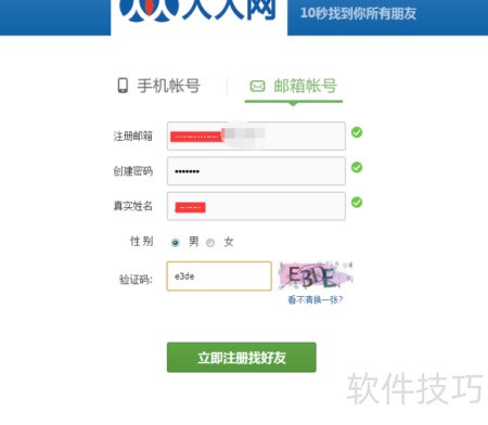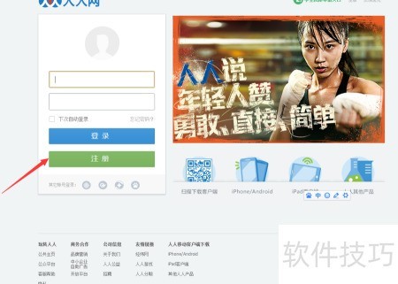 1、 打开人人网主页,点击底部注册按钮,完成账号创建。
