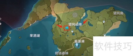 抵达望风山地后,先收集两处风元素,标记空中风神瞳位置,借助风场飞升获取。