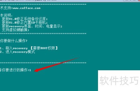 5、 根据屏幕提示,输入数字1开始执行Recovery程序的刷入操作。