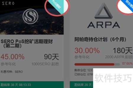 2、 通过右上角标签可区分PoS理财和锁仓理财,选择相应币种进入即可。