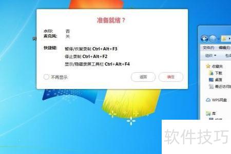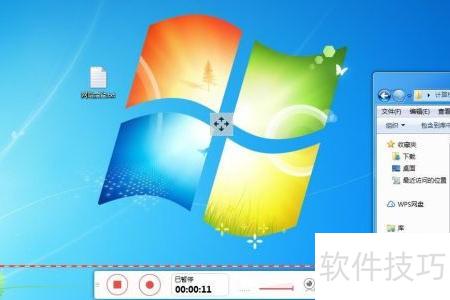 7、 录制启动后,虚线框内将显示录制中提示,表明软件正在运行,所录内容为虚线框范围内的一切画面。