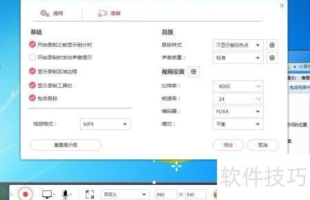 6、 点击红色圆点按钮会弹出提示框,可根据需要自行设置,若无特殊需求,保持默认设置即可开始录制。