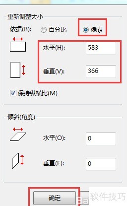 3、 选择像素选项,调高水平或垂直数值,确认修改后点击确定即可。