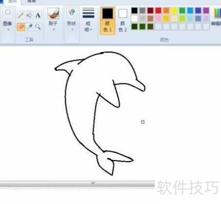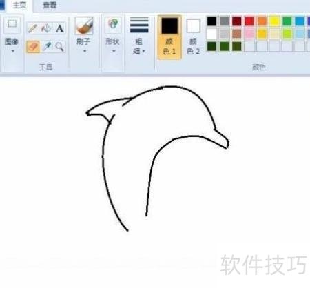 2、 用曲线工具勾勒小海豚的腹部与鱼鳍,再用橡皮擦清理多余线条。