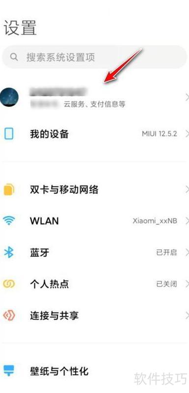 2、 打开小米手机设置,进入云服务账号。