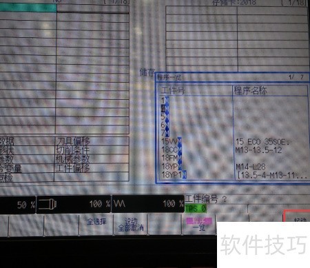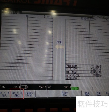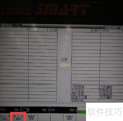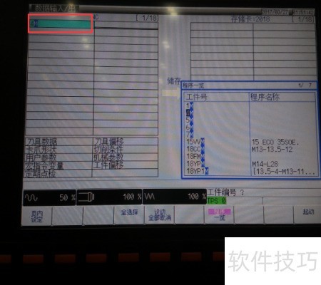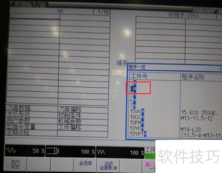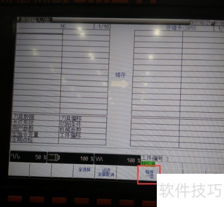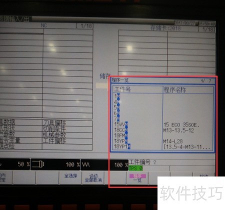 6、 按下操作面板的NC→卡存储后选择程序一览,即可显示程序列表,所示。