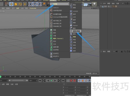 在C4D软件中,用户可通过顶部菜单栏的运动图形下拉列表,进入效果器选项并选择重置效果器,具体操作步骤如下所示。