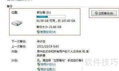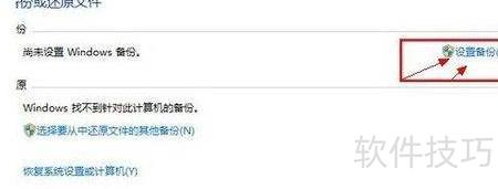 1、 进入备份和还原后,点击设置备份,进入相关界面,主要设定备份文件的存储位置,选择所需磁盘即可,具体操作所示。